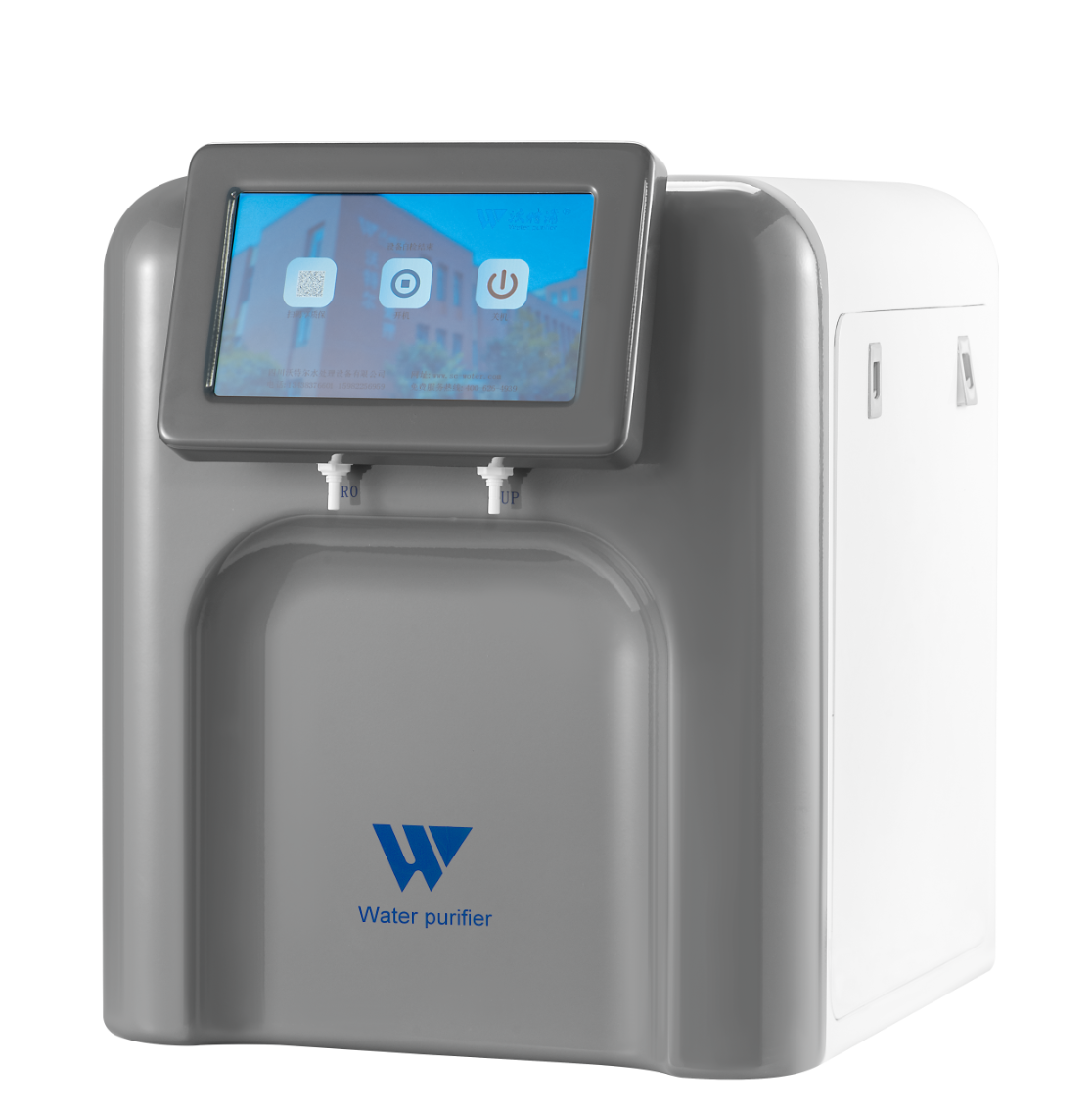 7.系統具備2個取水口,可同時取用純水和超純水兩種水質。雙路雙顯功能,實時監測顯示RO純水電導率,UP超純水電阻率及總有機碳含量(TOC)。RO純水測量范圍0-20μS/cm(在線監測)、UP超純水測量范圍0-18.25MQ.cm(在線監測)、電阻池靈敏常數≤0.01cm-1,溫度靈敏度≤±0.1℃,水溫自動補償功能,提高水質的準確性。